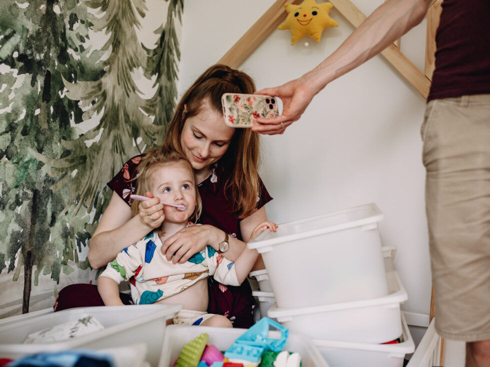 Vor Kurzem hatte ich erneut das wundervolle Privileg, diese herzliche Familie während eines Vormittags zu begleiten und einige kostbare Momente aus ihrem Familienalltag mit dem neuen Mitglied, dem kleinen Brüderchen, einzufangen. Es war ein zauberhaftes Zusammenspiel von inniger Nähe, fröhlichem Spiel, herzlichem Gelächter und kleinen Herausforderungen, die gemeinsam gemeistert wurden. Dabei wurden liebevolle Kuschelmomente genossen, unbeschwerte Spiele gespielt und hin und wieder auch mal „Nein“ gesagt, wobei die Zuneigung und Verbundenheit spürbar waren. Jede Handlung, sei es das Stillen oder Wickeln des Babys, wurde von einer liebevollen Aura begleitet. Solche Augenblicke sind es, die mein Herz als Fotografin höher schlagen lassen und die meine Leidenschaft für diese Art der Fotografie immer wieder neu beleben.